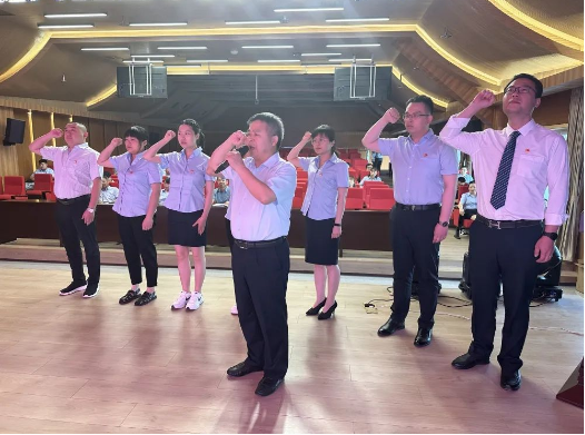 在宣誓儀式上,院黨委書記儲進(jìn)同志帶領(lǐng)7名新發(fā)展黨員重溫入黨誓詞,面向鮮紅的黨旗,大家高舉右拳,莊嚴(yán)宣誓,表達(dá)了要以入黨誓詞為行動指南,傳承革命精神,為黨的事業(yè)奮斗終身的堅定決心。