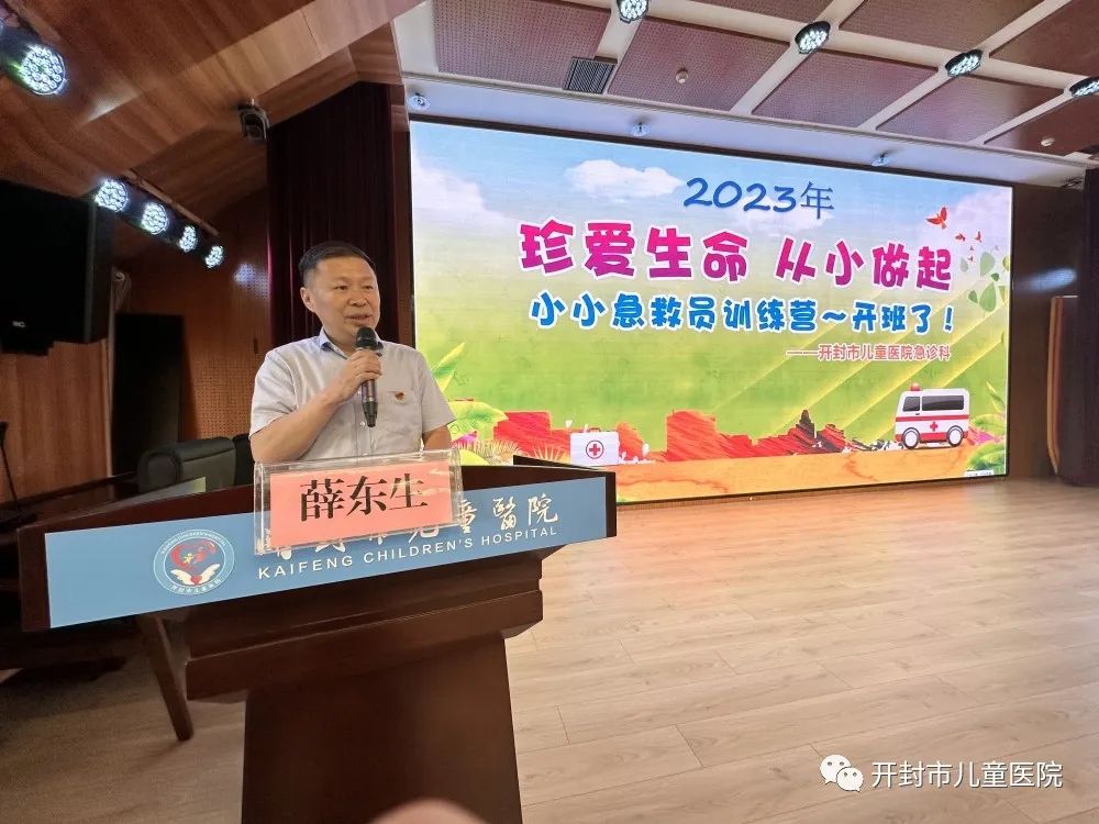 開(kāi)封市兒童醫(yī)院工會(huì)主席薛東生在活動(dòng)啟動(dòng)儀式上作開(kāi)班講話(huà),他強(qiáng)調(diào)孩子是未來(lái)的希望,學(xué)習(xí)急救知識(shí)是孩子們?cè)诔砷L(zhǎng)道路上必不可少的“一課”。此次活動(dòng)旨在大力普及急救知識(shí)和技能,引導(dǎo)青少年樹(shù)立“珍愛(ài)生命,從我做起”的健康理念,不斷提高小學(xué)生自救、互救能力,讓孩子們度過(guò)一個(gè)有意義的假期。