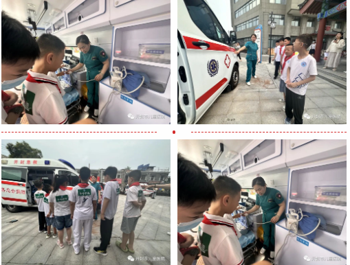 120急救車(chē)模擬急救組由主管護(hù)師秦艷麗、王敏帶領(lǐng)小學(xué)員參觀(guān)了120急救車(chē),并詳細(xì)講解了車(chē)內(nèi)每個(gè)急救設(shè)備的使用方法和用途,小學(xué)員們身臨其境地感受到了急救對(duì)于生命的重要性。