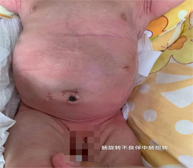 患兒:早產(chǎn)兒,胎齡33周2天,體重2.24公斤。因早產(chǎn)在我院新生兒內(nèi)科住院治療,住院期間患兒因出現(xiàn)膽汁樣嘔吐,經(jīng)我院超聲科曹海偉主任的精準(zhǔn)超聲檢查下,發(fā)現(xiàn)患兒明顯存在“漩渦征”的典型表現(xiàn),診斷患兒為先天性腸旋轉(zhuǎn)不良伴中腸扭轉(zhuǎn),經(jīng)我們新生兒外科會(huì)診后轉(zhuǎn)至我科,轉(zhuǎn)入后主管大夫劉備積極術(shù)前準(zhǔn)備,經(jīng)副主任醫(yī)師王子林,主治醫(yī)師丁萌的準(zhǔn)確研判下,急診給予患兒行“經(jīng)腹腔鏡先天性腸旋轉(zhuǎn)不良糾正術(shù)”,術(shù)中見(jiàn)中腸扭轉(zhuǎn)360°、無(wú)壞死,行腸扭轉(zhuǎn)復(fù)位、腸旋轉(zhuǎn)不良糾治、闌尾切除手術(shù),歷經(jīng)90分鐘,順利完成手術(shù)。在術(shù)后第3天拔除胃管,術(shù)后第4天開(kāi)始喂水,術(shù)后第5天開(kāi)奶。目前已完全康復(fù)出院。