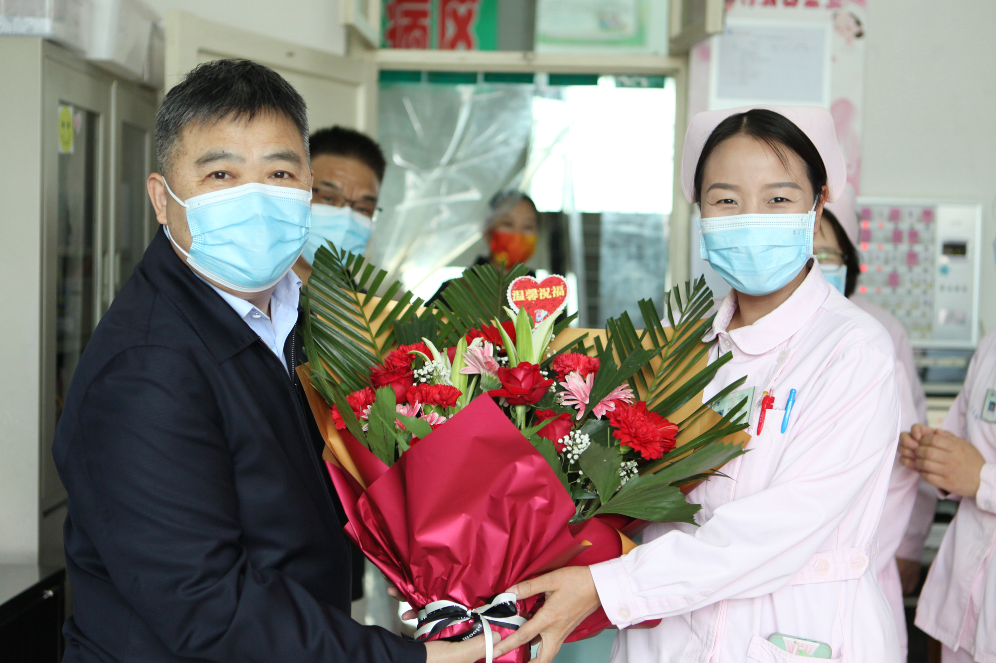 在這淺夏芬芳,生機盎然的五月,第111個“5.12”國際護士節(jié)伴隨著淺夏的微風(fēng)悄然而至。5月12日早上,由黨委書記儲進、院長王喜聰帶領(lǐng)院領(lǐng)導(dǎo)班子等一行人走進各臨床科室,親切慰問了節(jié)日中堅守在工作崗位上的白衣天使們,并將一束束代表敬意、祝福、關(guān)懷的鮮花送到護士身邊,表達節(jié)日美好祝愿!