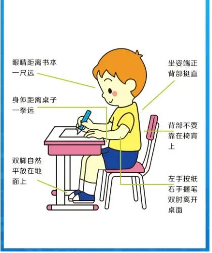 三、養(yǎng)成良好用眼習(xí)慣,一是讀寫做到“三個(gè)一”,即“一尺一拳一寸”,眼離書本一尺,胸距書桌一拳,手離筆尖一寸,不可平躺、側(cè)躺或趴在床上看書,不可邊走邊看書,或者在移動(dòng)的車廂內(nèi)看書。二是堅(jiān)持“20—20—20”原則,即近距離用眼20分鐘,向20英尺外(約6米)遠(yuǎn)眺20秒以上。