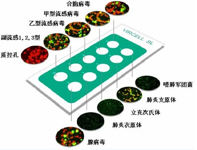 因間接免疫熒光法制備一種熒光抗體可用于檢測(cè)多種抗體的特性,我科室開展的“九項(xiàng)呼吸道病原抗體”檢測(cè)項(xiàng)目,一次采血即可對(duì)“嗜肺軍團(tuán)菌、肺炎支原體、Q熱立克次體、肺炎衣原體、腺病毒、呼吸道合胞病毒、甲型流感病毒、乙型流感病毒、副流感病毒”九種呼吸道病原體的IgM抗體進(jìn)行檢測(cè),范圍更廣。