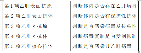 乙肝五項又稱乙肝兩對半,是對乙型肝炎病毒(HBV)感染血清標志物的定性檢測,包括乙肝表面抗原(HBsAg)、乙肝表面抗體(HBsAb)、乙肝e抗原(HBeAg)、乙肝e抗體(HBeAb)、乙肝核心抗體(HBcAb),在乙肝五項報告中常用“+”表示陽性、“-”表示陰性。