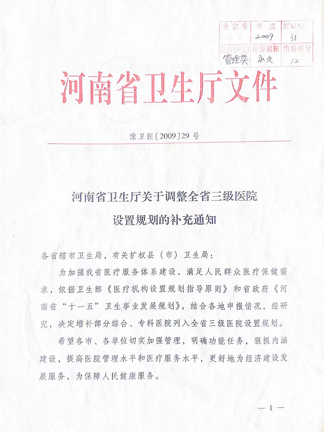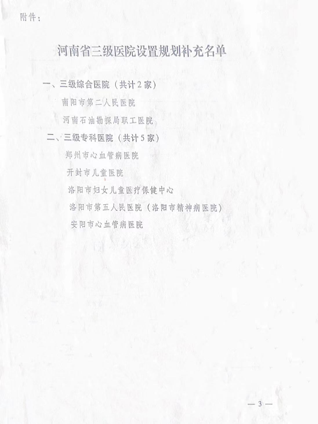 河南省衛(wèi)生廳關(guān)于調(diào)整全省三級醫(yī)院設(shè)置規(guī)劃的補(bǔ)充通知