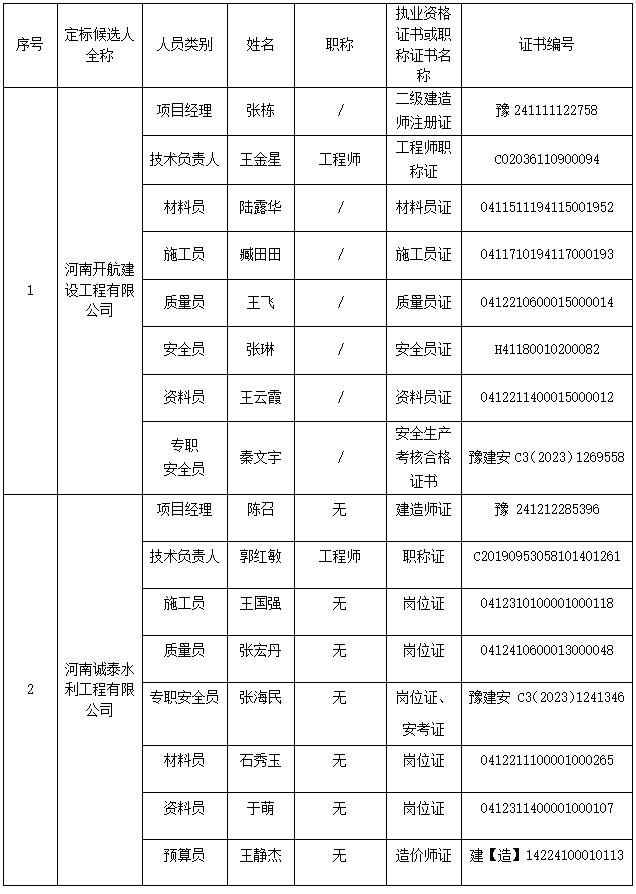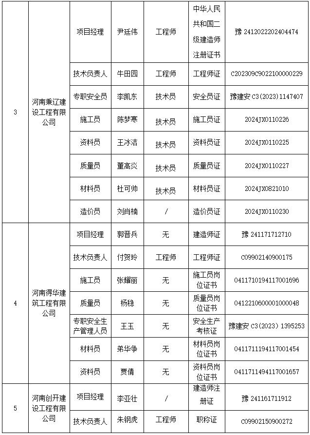2.2.3、人員要求:擬任項(xiàng)目經(jīng)理須具有建筑工程專業(yè)貳級(含貳級)以上注冊建造師資格(不含臨時)和有效的安全生產(chǎn)考核合格證書(B證),且未擔(dān)任其他在建工程項(xiàng)目的項(xiàng)目經(jīng)理(出具無在建工程承諾書);如有在建,一經(jīng)查實(shí)取消其資格;擬派技術(shù)負(fù)責(zé)人需具備工程類相關(guān)專業(yè)中級及以上技術(shù)職稱;項(xiàng)目經(jīng)理、技術(shù)負(fù)責(zé)人、施工員、質(zhì)量員(或質(zhì)檢員)、材料員、資料員、專職安全員等項(xiàng)目管理機(jī)構(gòu)所有人員須是本單位在職人員,提供勞動合同及近三個月按時繳納社會保險的證明材料(新聘用的人員從聘用之日起算)