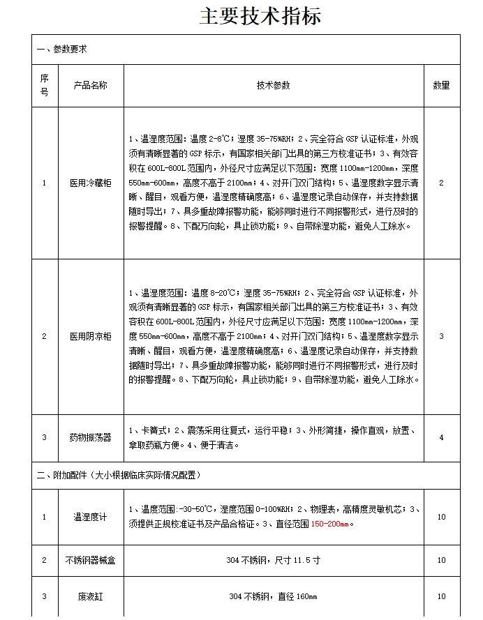 采購(gòu)冷藏箱2臺(tái)、陰涼柜3臺(tái)、振蕩器4臺(tái)。